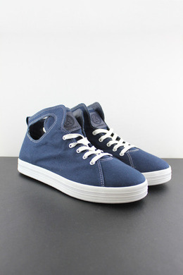 Canvas upper with cut-out ankle detailing. Metal eyelits and a rubber sole.