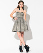 Inspired by the fifties, Ladkah brings you their Eclipse Brocade Dress. This statement piece features a metallic exclusive print, cinched waist, and a sweet heart neckline. adjustable/removable straps, and black netting underlay which gives it the voluminous 50s look. 36% Polyester, 15% Metallic Thread and 49% Rayon and Lining: 97% Polyester and 3% Spandex. |