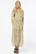 This dress is relaxed fit perfection with sheer panels, extended button front placket and drawstring waist. She has metallic dome closures in the front, cute as rounded collars and two breast pockets.