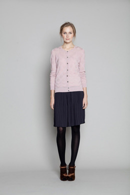 A sweet little cardigan with textured spots and stripes. Knitted in our finest gauge for layering and transeasonal wear - and scrunch resistant for travel. Yarn: 100% Merino. |
