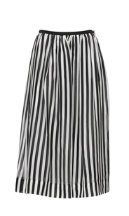 • Details: elasticized back waistband; sides of skirt extend to form ties; dropped shirt-tail hemline at back; fully lined