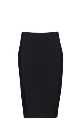 Fitted 3/4 skirt with raw hem and invisible zip at centre back.